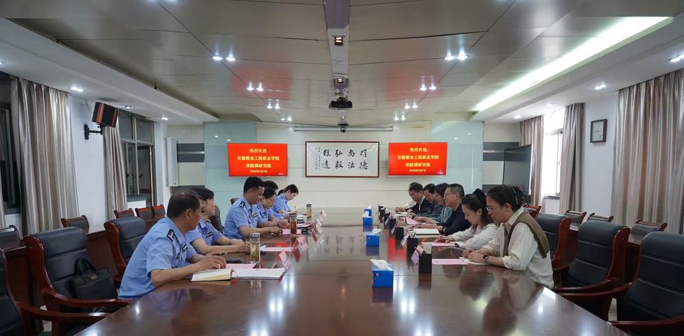 5月9日,安徽糧食工程職業(yè)學(xué)院黨委委員、副院長張俊峰率組織人事處、總務(wù)處等部門負(fù)責(zé)人一行8人來院調(diào)研交流。學(xué)院黨委委員、副院長方歡歡主持召開調(diào)研座談會,學(xué)院黨政辦公室、組織宣傳處、人事警務(wù)處、行政財務(wù)處、總務(wù)處等相關(guān)部門負(fù)責(zé)人參會。