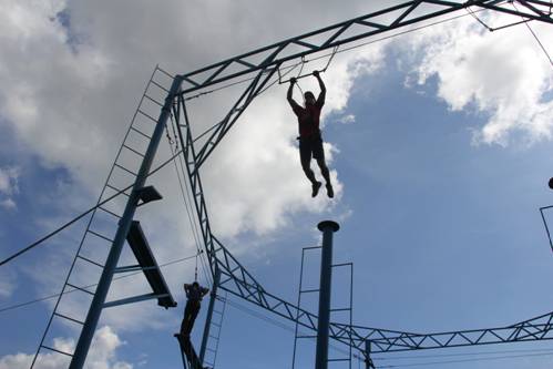 圖為我系10級(jí)實(shí)習(xí)生在做高空訓(xùn)練