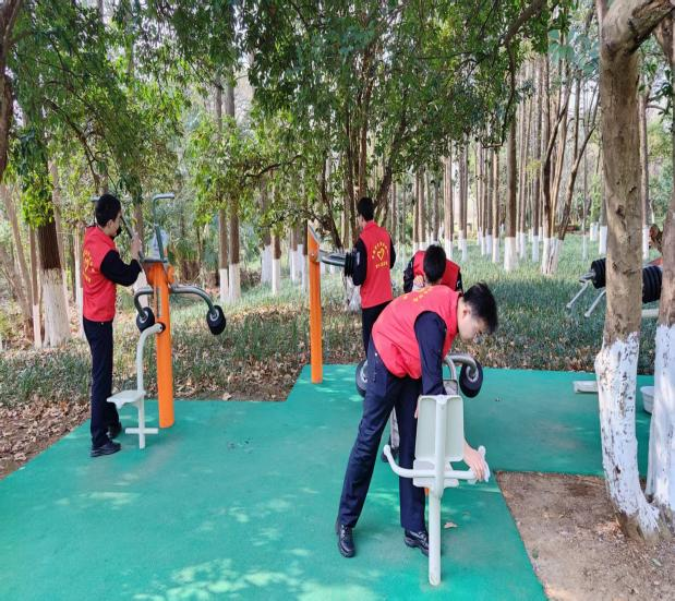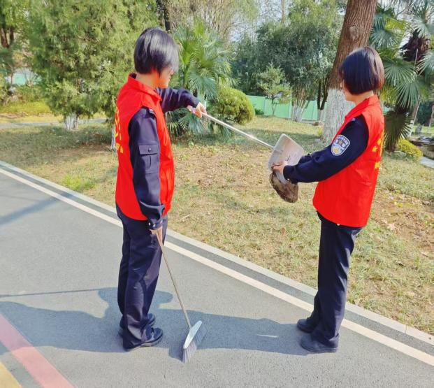 活動當天,馬克思主義學院師生攜帶清潔工具,分工協作,對廬州公園主干道、健身區域展開全面清掃。志愿者們細致清理了道路兩側堆積的落葉,擦拭并消毒公共健身器材,確保市民活動環境的安全與整潔。此次活動累計清理落葉20余袋,服務覆蓋公園核心區域,贏得現場市民的連連稱贊。