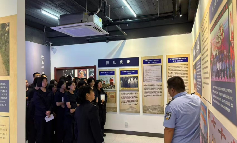 安徽省法治宣傳教育基地是安徽省法宣辦、安徽省司法廳依托原合肥監(jiān)獄辦公樓舊址打造的全國第一家省級法治宣傳教育基地,是具有安徽特色的省級普法宣傳教育陣地。在講解員的引導下,師生們在安徽監(jiān)獄歷史文化展廊中,通過動態(tài)圖文展板與實物陳列,系統(tǒng)了解安徽省法治建設的歷史脈絡與發(fā)展成就。斑駁的文物、珍貴的檔案和生動的復原場景,讓同學們真切感受到了法治不再是書本上冰冷的概念,而是一代代人努力推動的社會實踐。沉浸式教學讓抽象的法治理論轉化為了可觸可感的現(xiàn)實體驗,不僅拓寬了師生們的視野,更在大家心中筑起了法治信仰之基,取得了良好的教育效果。