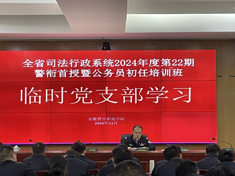 為進一步加強培訓班管理,充分發揮黨組織戰斗堡壘作用和黨員模范先鋒作用,11月19日晚,第22期警銜首授暨公務員初任培訓班成立臨時黨支部,并組織全體黨員開展了一次主題鮮明的學習活動。
