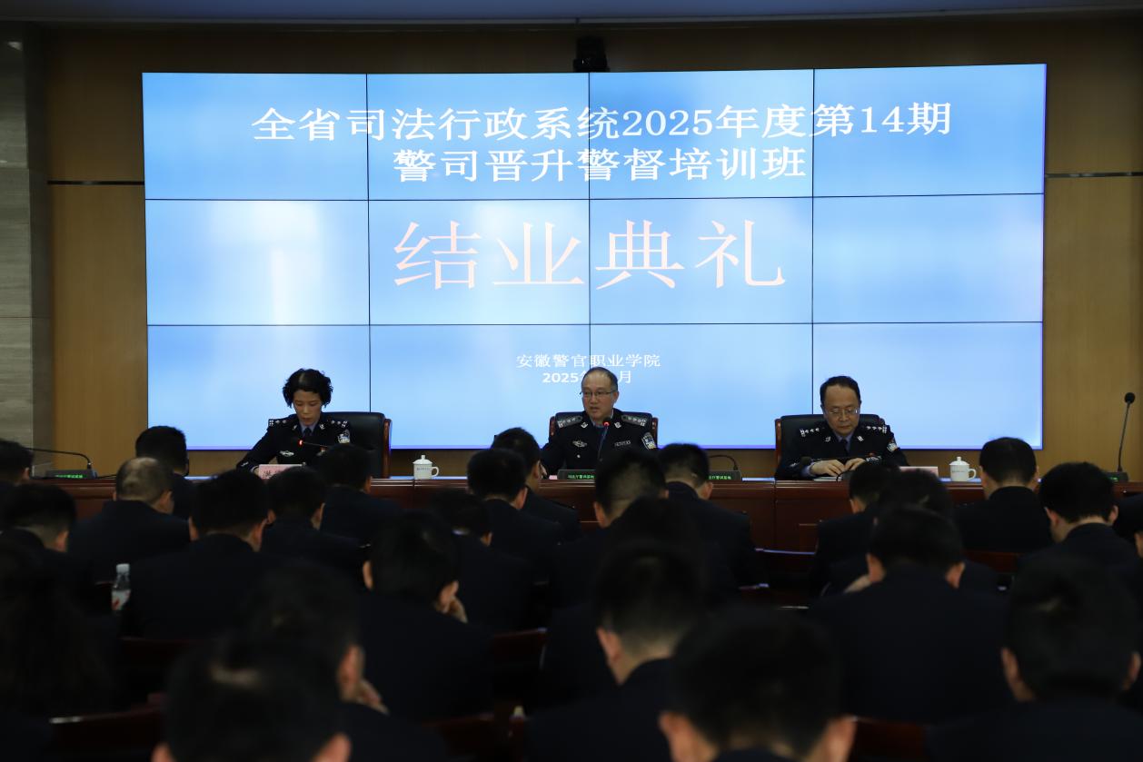 11月5日下午,全省司法行政系統2025年度第14期警司晉升警督培訓班結業典禮在繼續教育學院多功能廳舉行。繼續教育學院副院長張永紅作結業總結講話,警訓科全體人員參加典禮。蚌埠強制隔離戒毒所余至鵬代表學員作了交流發言。