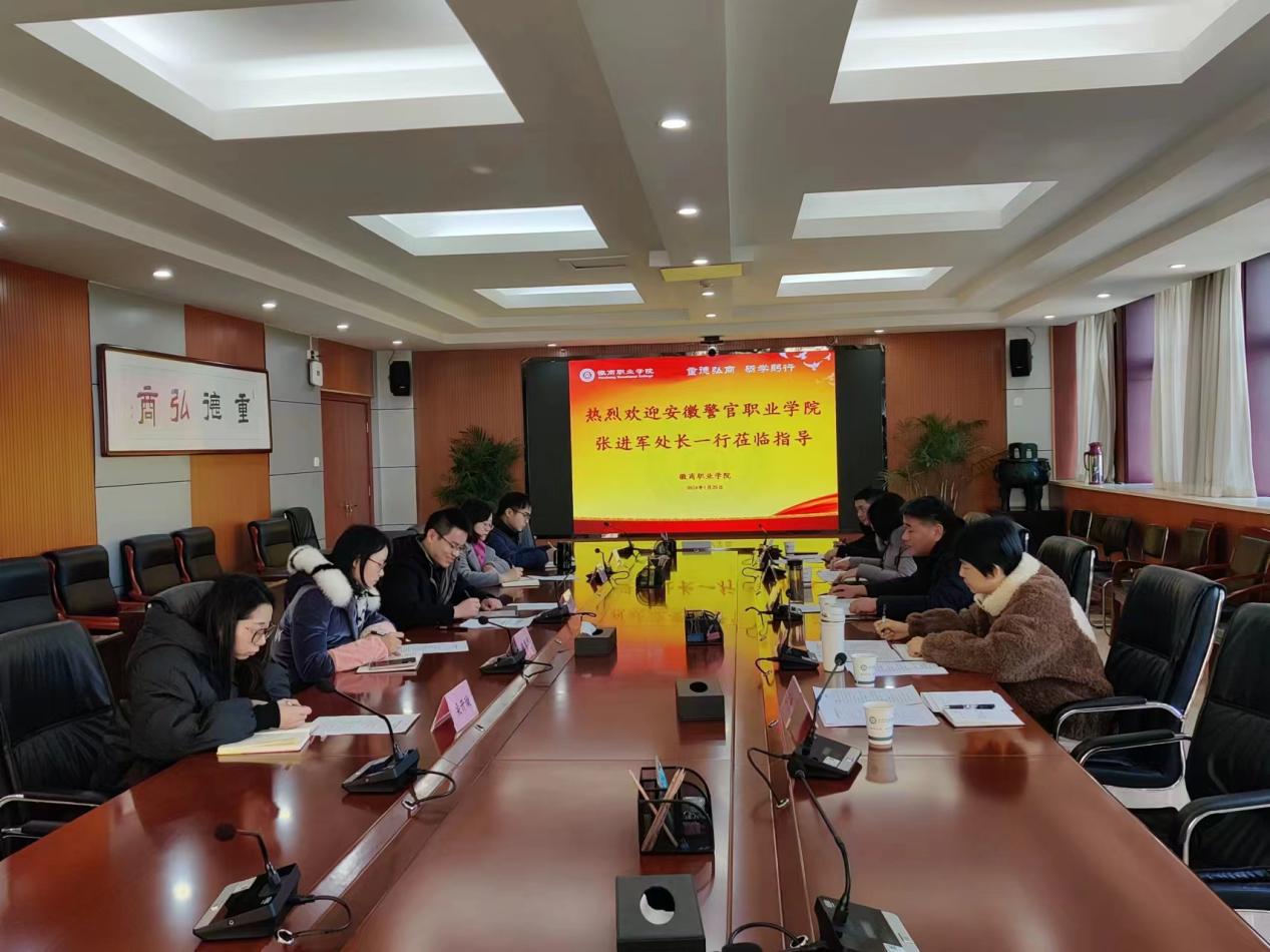 1月25日下午,學院人事警務處赴徽商職業學院開展學習調研,徽商職業學院組織人事處主要負責人陸培中熱情接待了張進軍一行,該校組織人事處相關人員參加座談。
