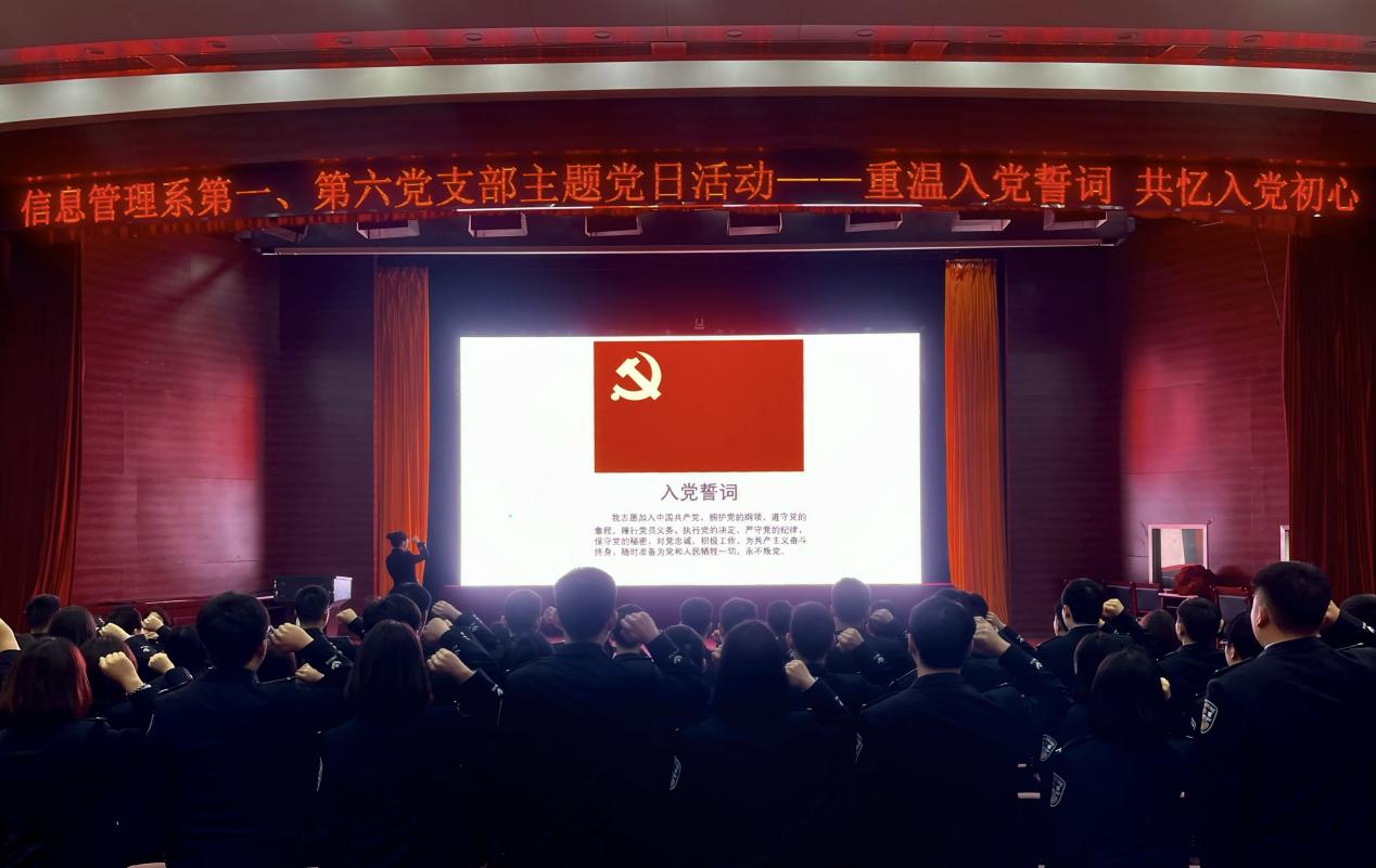 2024年12月18日上午,信息管理系第一、第六黨支部在學(xué)術(shù)報(bào)告廳舉行“重溫入黨誓詞 共憶入黨初心”主題黨日活動(dòng),全體師生黨員參加活動(dòng)。